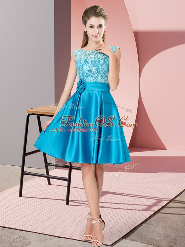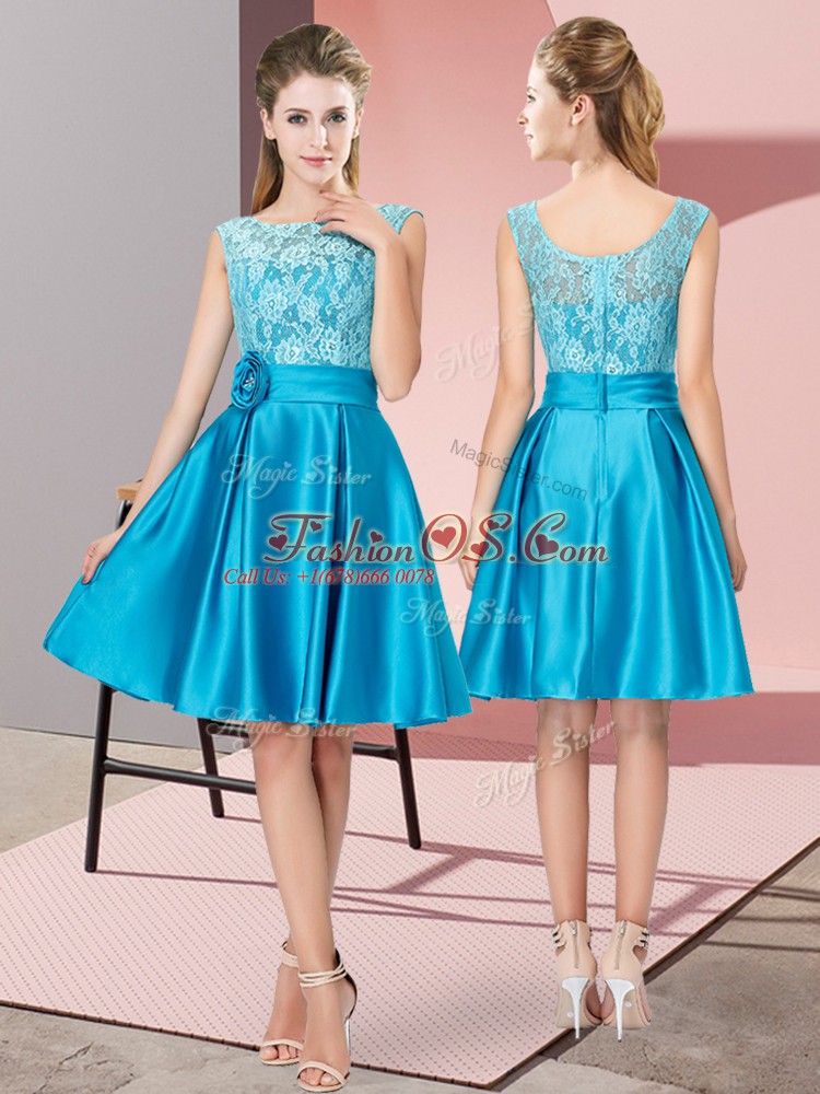 New Style Sleeveless Zipper Knee Length Lace and Hand Made Flower