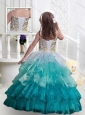New Style Spaghetti Straps Little Girl Pageant Dresses with Ruffled Layers and Beading