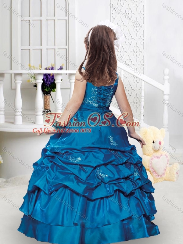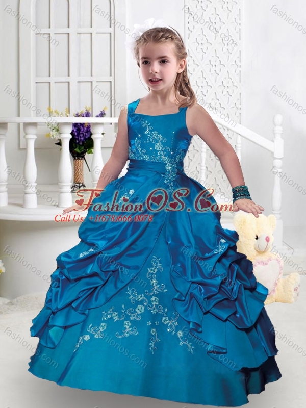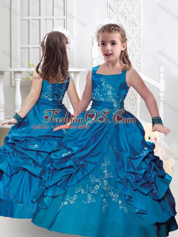 New Style Square Taffeta Little Girl Pageant Dresses with Appliques and Bubles