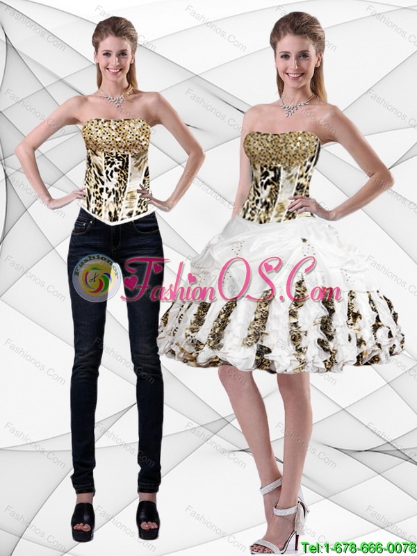 New Style Strapless Leopard Print 2015 Detachable Prom Dress in Multi Color