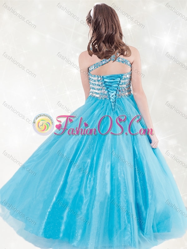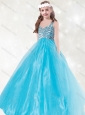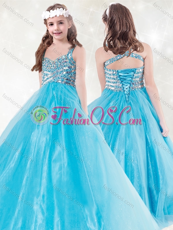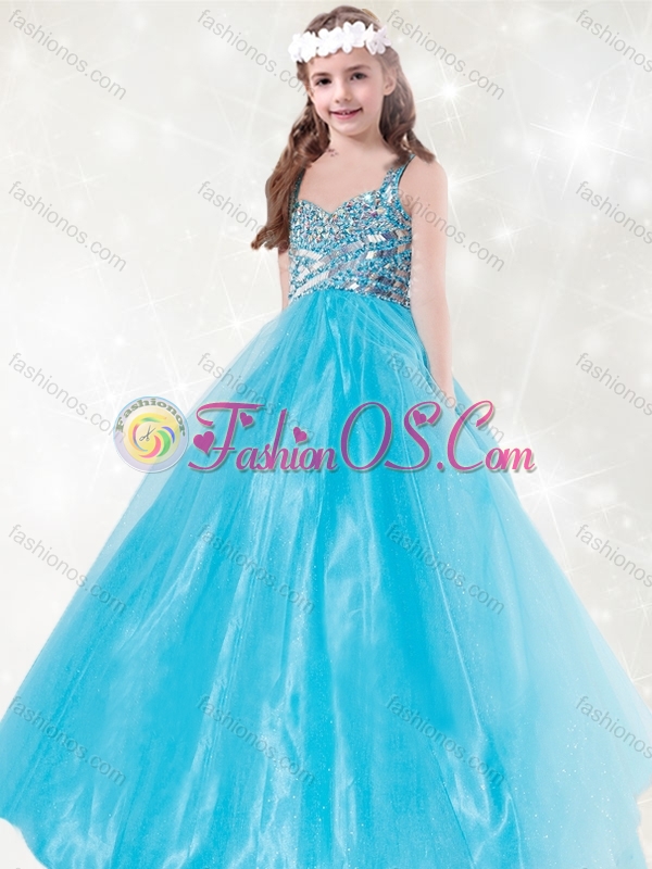 New Style Straps Beading Little Girl Pageant Dress in Aqua Blue