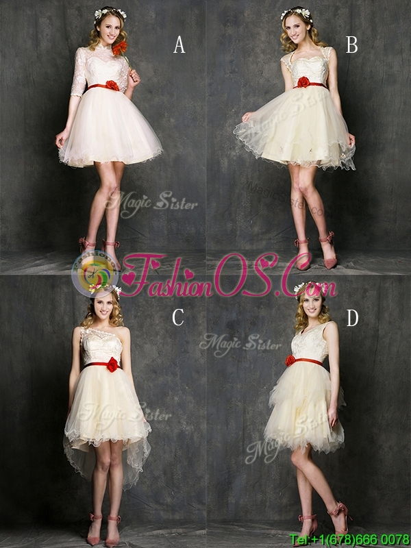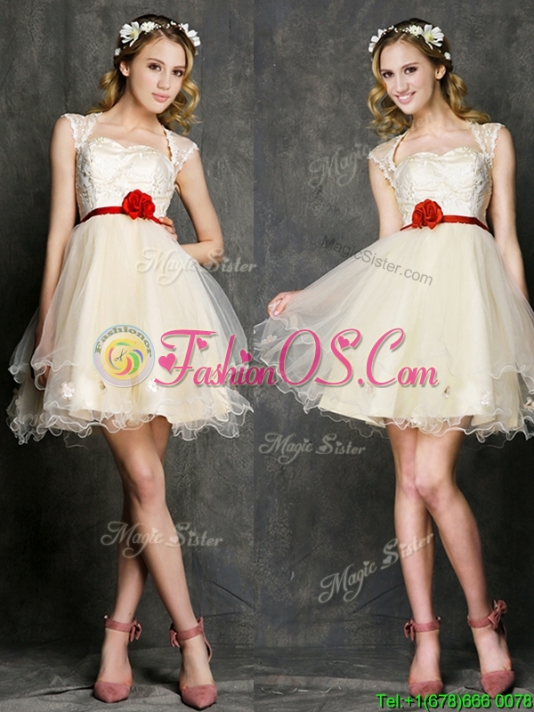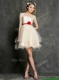 New Style Straps Short Bridesmaid Dress with Belt and Appliques