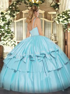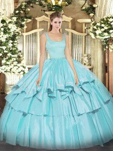 New Style Straps Sleeveless Zipper Sweet 16 Dresses Aqua Blue Organza and Taffeta