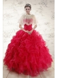 New Style Sweetheart Beading 2015 Quinceanera Dresses in Coral Red