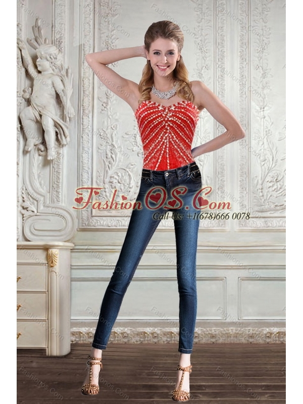 New Style Sweetheart Coral Red Corset With Beading for 2015