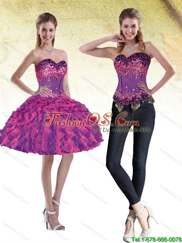 Home >  Prom Dresses >  Detachable Prom Dresses > New Style Sweetheart Multi Color 2015 Detachable Prom Dress with Beading and Ruffles