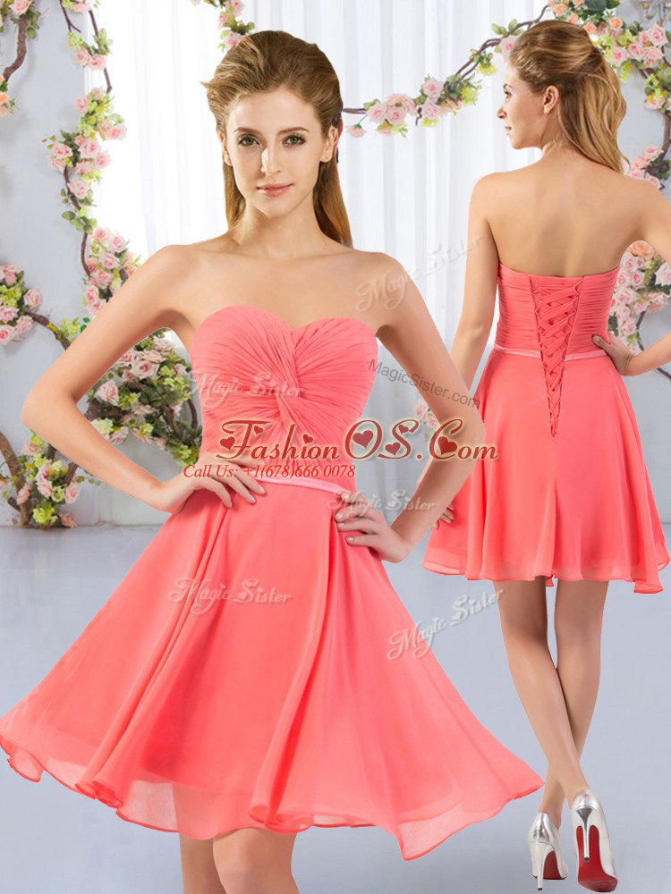 New Style Sweetheart Sleeveless Chiffon Dama Dress for Quinceanera Ruching Lace Up