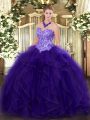 New Style Sweetheart Sleeveless Lace Up Vestidos de Quinceanera Purple Organza