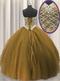 New Style Three Piece Sequins Brown Sleeveless Tulle Lace Up 15th Birthday Dress for Military Ball and Sweet 16 and Quinceanera