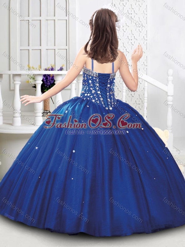 Home >  Special Occasion Dresses >  New Style Little Girl Pageant Dresses > New Style Tulle Beaded Mini Quinceanera Dress with Spaghetti Straps