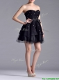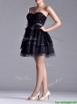 New Style Tulle Black Short Prom Dress with Beading and Belt