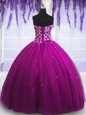 New Style Tulle Sweetheart Sleeveless Lace Up Beading Quinceanera Dress in Fuchsia