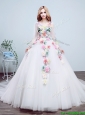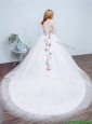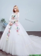 New Style V Neck Court Train Wedding Dress with Appliques and Hand Made Flowers