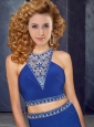 New Two Piece Column Elastic Woven Satin Prom Dress with Beading