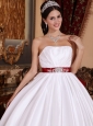 New White Quinceanera Dress Strapless Taffeta Sashes / Ribbons Ball Gown