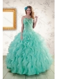 Newest Aqua Blue Quince Dresses with Beading and Ruffles for 2015