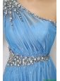 News Arrivals Beaded Baby Blue Prom Dresses with One Shoulder