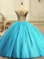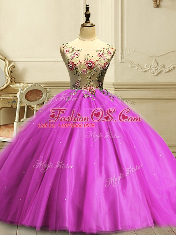 Nice Appliques and Sequins Ball Gown Prom Dress Fuchsia Lace Up Sleeveless Floor Length