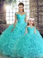 Nice Aqua Blue Fabric With Rolling Flowers Lace Up Vestidos de Quinceanera Sleeveless Floor Length Beading
