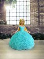 Home >  Quinceanera Dresses >  Princesita with Quinceanera Dresses > Nice Aqua Blue Fabric With Rolling Flowers Lace Up Vestidos de Quinceanera Sleeveless Floor Length Beading
