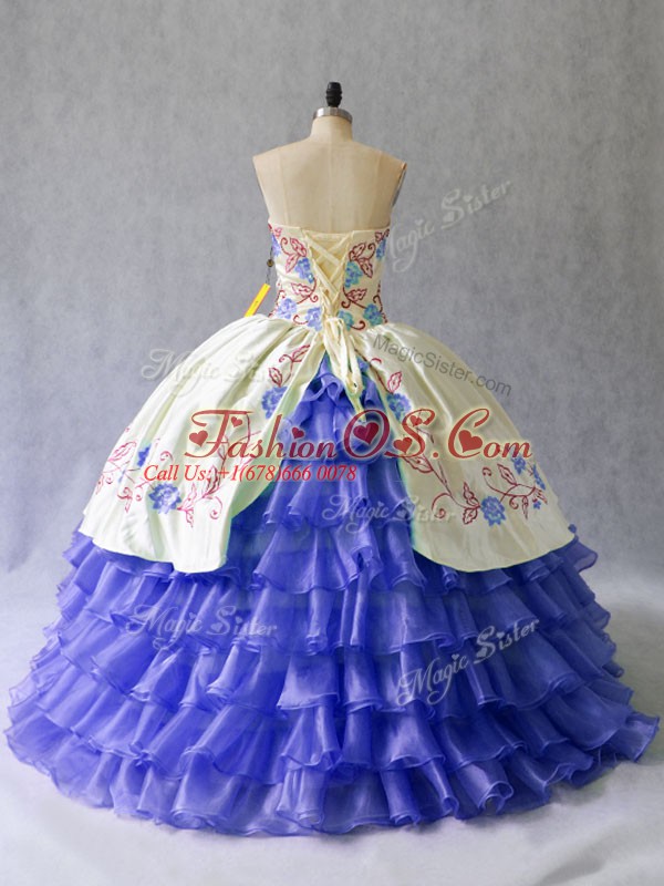 Nice Beading and Embroidery Sweet 16 Quinceanera Dress Blue Lace Up Sleeveless Floor Length
