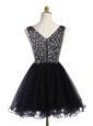 Nice Black V-neck Neckline Beading Evening Dress Sleeveless Zipper
