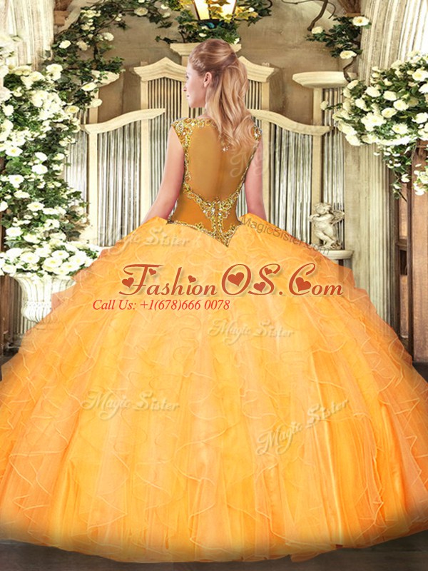 Nice Blue Sleeveless Floor Length Beading and Ruffles Zipper Sweet 16 Dresses
