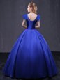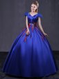 Nice Cap Sleeves Floor Length Appliques Lace Up 15 Quinceanera Dress with Royal Blue
