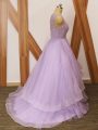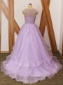 Home >  Prom Dresses >  Fashionable Prom Dresses > Nice Lavender A-line Scoop Sleeveless Organza Brush Train Zipper Beading and Ruffles Homecoming Dress