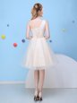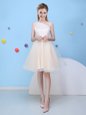 Nice One Shoulder Champagne Lace Up Bridesmaids Dress Bowknot Sleeveless Knee Length