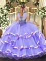 Nice Organza Sleeveless Floor Length Sweet 16 Quinceanera Dress and Beading and Ruffled Layers