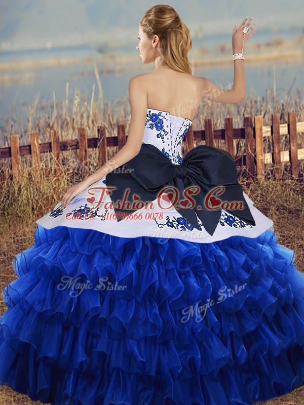 Nice Organza Sleeveless Floor Length Vestidos de Quinceanera and Embroidery and Ruffled Layers and Bowknot