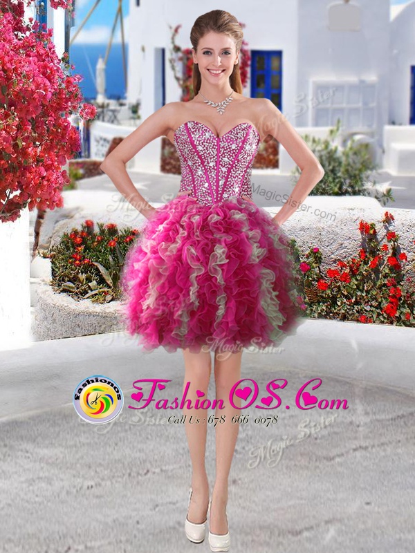 Home >  Prom Dresses >  Perfect Prom Dresses > Nice Organza Sleeveless Mini Length Homecoming Dress and Beading and Ruffles