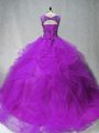 Nice Purple Sleeveless Beading and Ruffles Lace Up Quince Ball Gowns