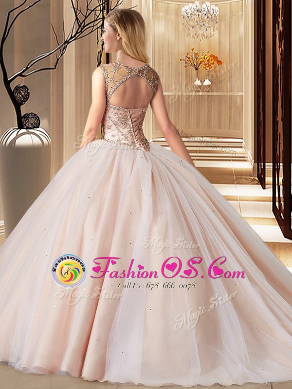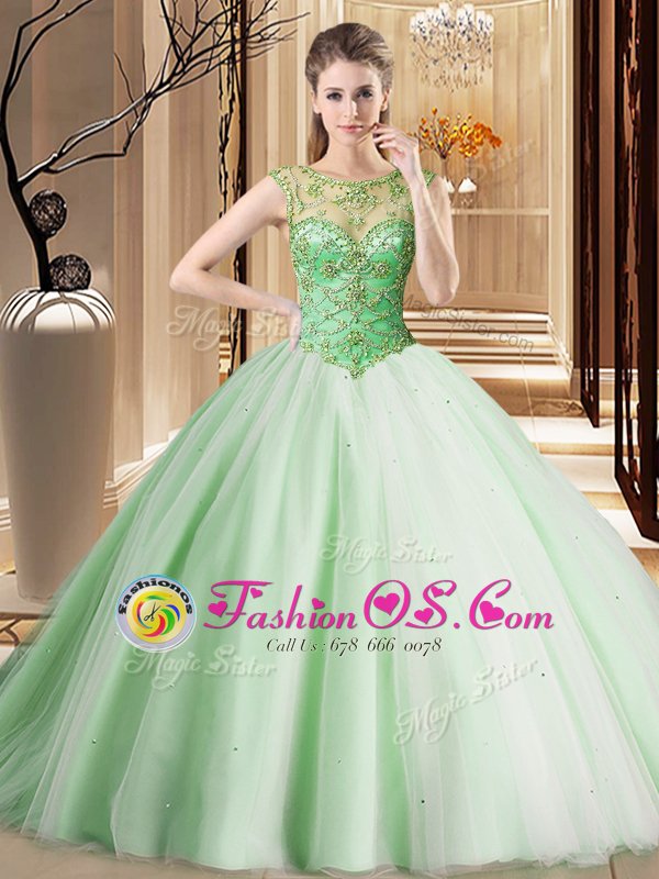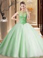 Nice Scoop Apple Green Ball Gowns Beading Quince Ball Gowns Lace Up Tulle Sleeveless
