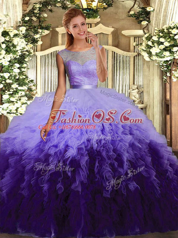 Nice Scoop Sleeveless Backless Ball Gown Prom Dress Multi-color Organza