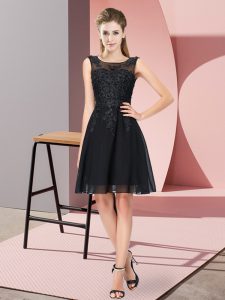 Nice Sleeveless Knee Length Appliques Zipper Dama Dress with Black