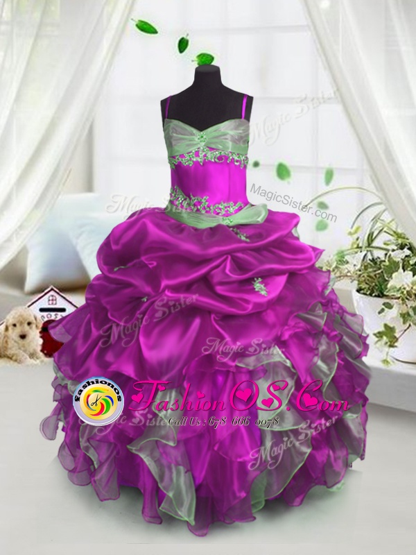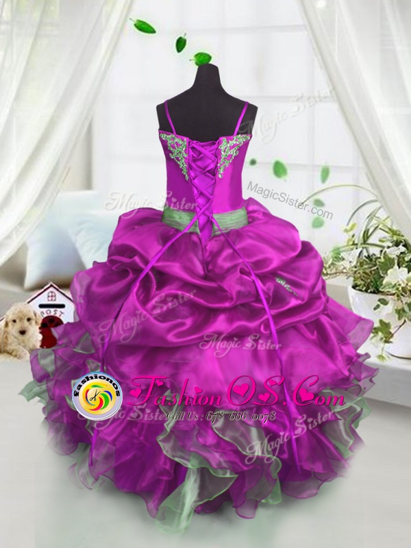 Home >  Special Occasion Dresses >  New Style Little Girl Pageant Dresses > Nice Sleeveless Lace Up Floor Length Beading and Ruffles and Pick Ups Child Pageant Dress
