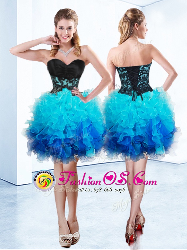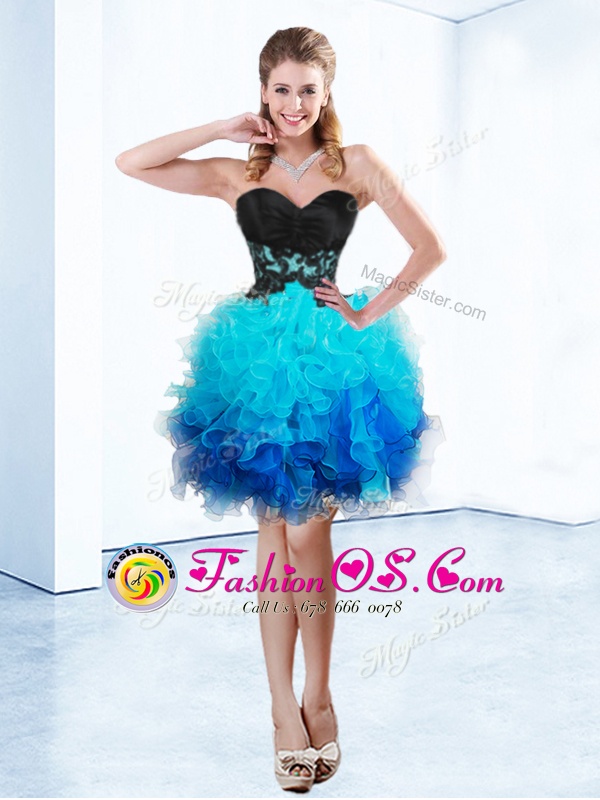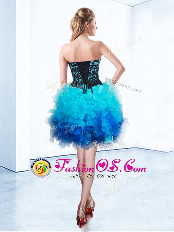 Nice Sleeveless Lace Up Mini Length Ruffles Cocktail Dresses