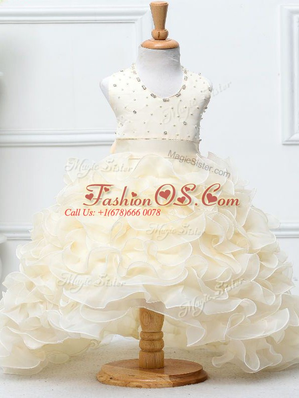 Nice Sleeveless Zipper High Low Beading and Ruffles Child Pageant Dress
