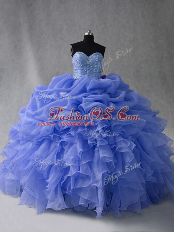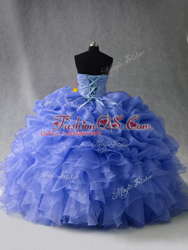 Nice Sweetheart Sleeveless Lace Up 15 Quinceanera Dress Blue Organza