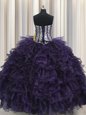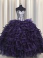 Nice Visible Boning Sleeveless Lace Up Floor Length Ruffles and Sequins Quince Ball Gowns
