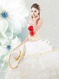 Home >  Quinceanera Dresses >  Clearance Quinceanera Dresses > Nice White Organza and Taffeta Lace Up Quinceanera Dress Sleeveless Floor Length Beading and Embroidery and Ruffles