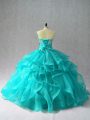 Noble Aqua Blue Ball Gowns Organza Sweetheart Sleeveless Beading and Ruffles Floor Length Lace Up Sweet 16 Quinceanera Dress
