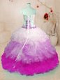 Noble Ball Gowns Organza Sweetheart Sleeveless Beading and Ruffles and Hand Made Flower Floor Length Lace Up Quinceanera Gowns