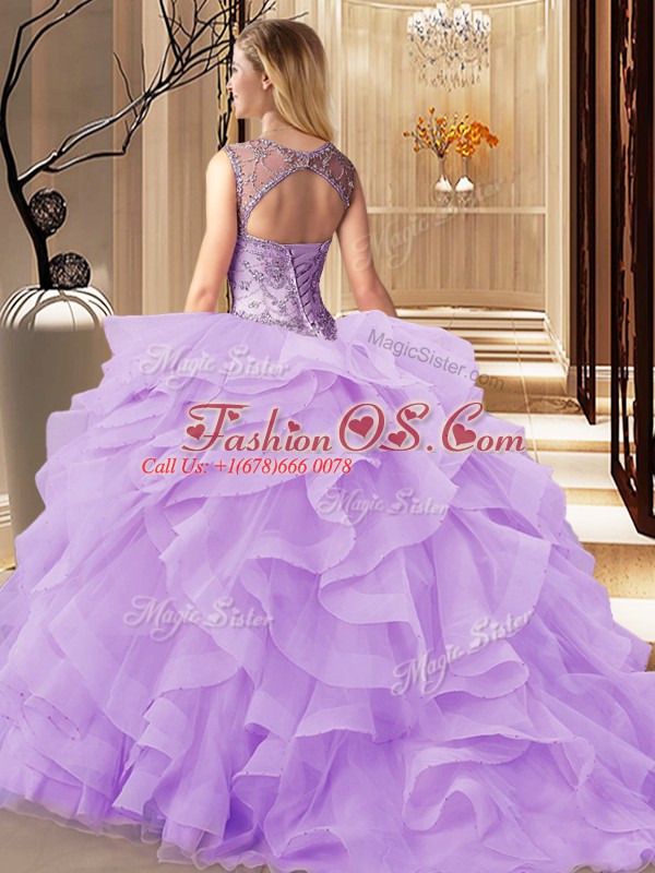 Noble Burgundy Sleeveless Tulle Brush Train Lace Up 15th Birthday Dress for Military Ball and Sweet 16 and Quinceanera