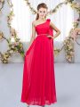 Noble Floor Length Empire Sleeveless Red Court Dresses for Sweet 16 Lace Up