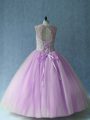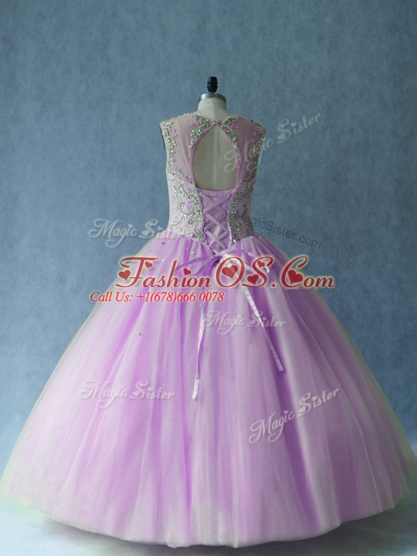 Noble Floor Length Lace Up Quinceanera Gowns Lilac for Sweet 16 and Quinceanera with Beading