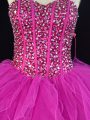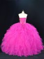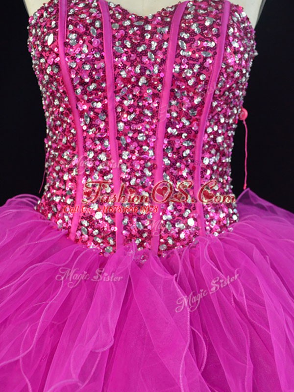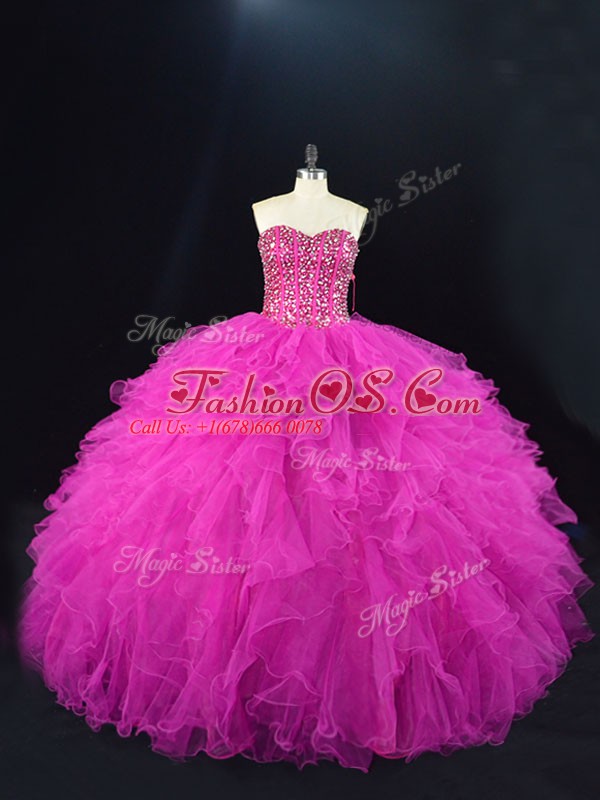 Noble Fuchsia Ball Gowns Sweetheart Sleeveless Tulle Floor Length Lace Up Beading and Ruffles Quinceanera Dress