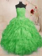 Noble Green Ball Gowns Tulle and Sequined Sweetheart Sleeveless Beading Floor Length Lace Up 15 Quinceanera Dress